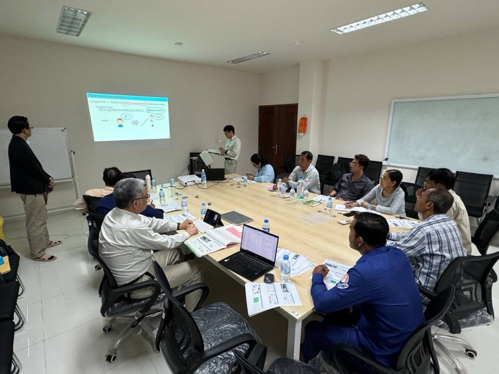 2025年10月23日(プノンペン): 北九州市上下水道局のミッションチームは、環境教育や下水道啓発イベントについてプノンペン王立大学の開発副学部長と関係者と一緒に打ち合わせしました。