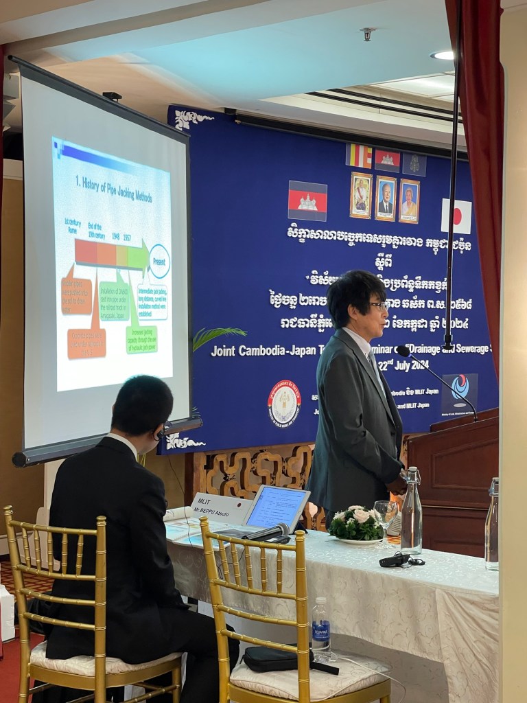 基づく政府間会議が午前中、また、下水道技術セミナーが午後、Hotel Raffles LE ROYAL Phnom Penhにて開催されました。両国の下水道分野の協力関係は、2017年MPWTと国道交通省の下水道技術協力に関する覚書(MoC)の締結以後、一段強化されたと感じた次第です。