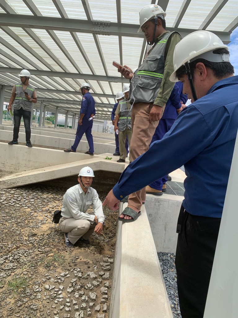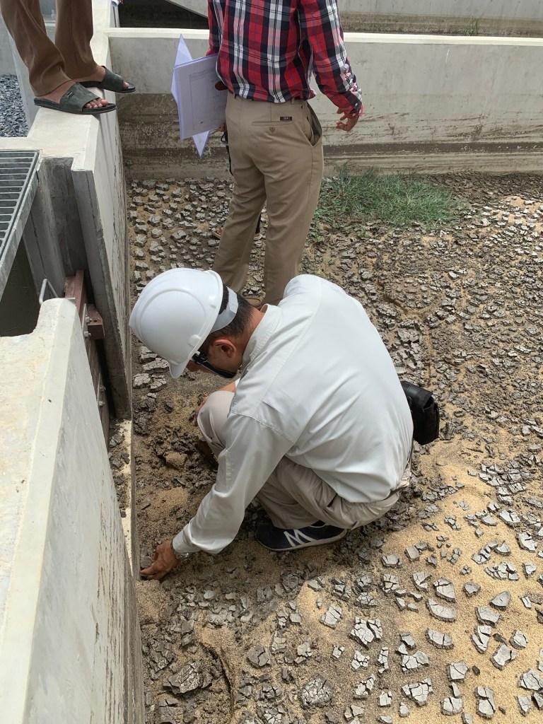 9/3午前中: プノンペン初下水処理場のスタートアップ支援の一環として、日常点検の指導の様子