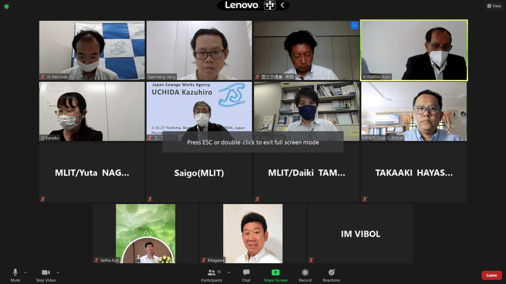 プノンペン都における下水道管理能力向上プロジェクトで、下水道建設向け第二回ファイナンシャルワーキングループのオンライン会議が開催できました。下水処理場の管理組織や管理者・作業員の育成計画などについて、議論できました。