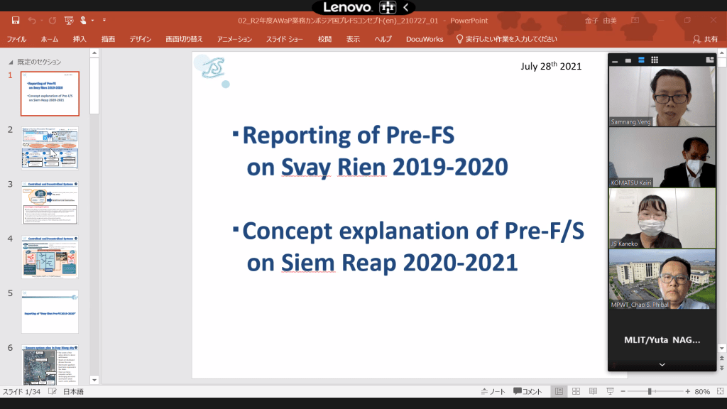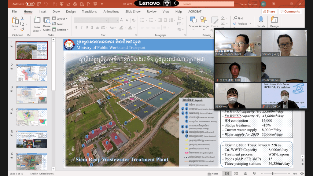 本日、日本下水道事業団(JS)とカンボジア公共事業運輸省(MPWT)は、州における下水道整備に関するプリF/S調査に関する協議をオンラインで行われた。その際、通訳担当させていただきました。